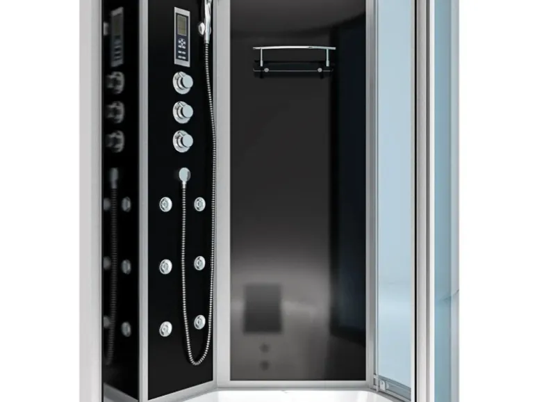 Farbe der Rückwände Schwarz, Außenmaße der Dusch-& Badewanne Kombination 98x170x225cm