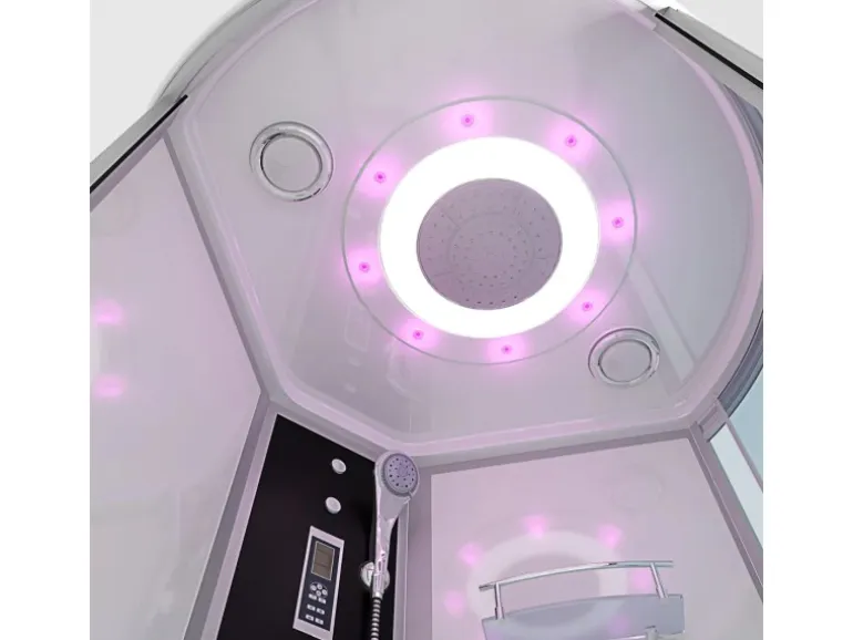 Die Rahmenkonstruktion ist komplett aus Aluminium. Die Badewanne ist aus dickem Sanitär- Acryl welches zusätzlich glasfaserverstärkt wurde. Die Duschwanne steht auf einem sehr stabilen Stahlrahmen mit einzeln einstellbaren Füßen.