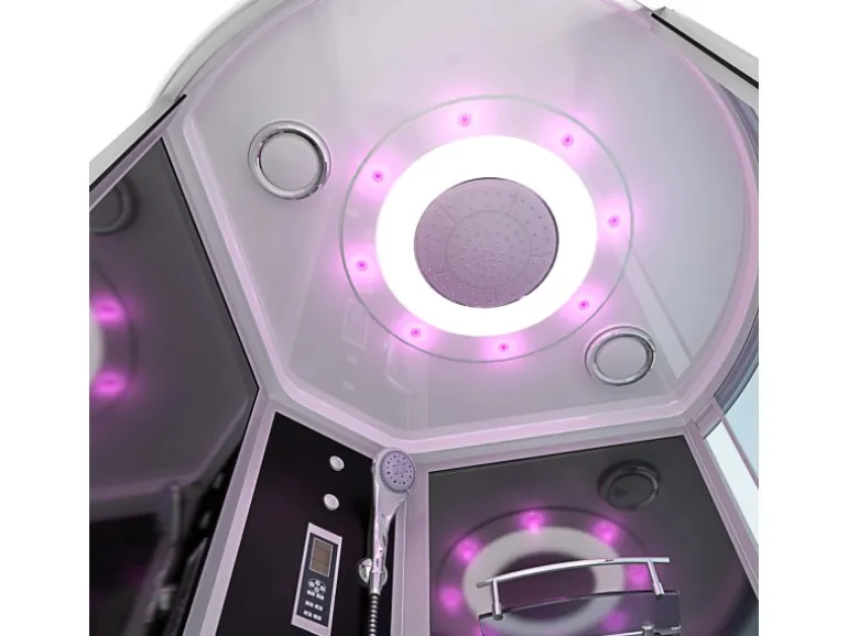 Die Rahmenkonstruktion ist komplett aus Aluminium. Die Badewanne ist aus dickem Sanitär- Acryl welches zusätzlich glasfaserverstärkt wurde. Die Duschwanne steht auf einem sehr stabilen Stahlrahmen mit einzeln einstellbaren Füßen.