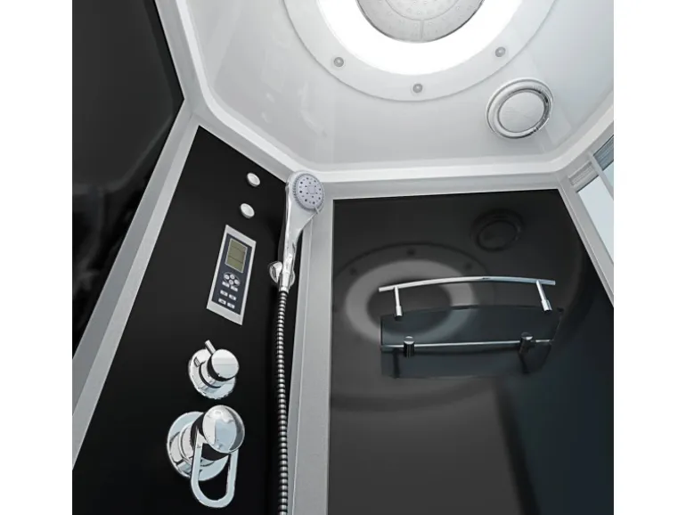 Farbe der Rückwände Schwarz, Außenmaße der Dusch-& Badewanne Kombination 98x170x220cm