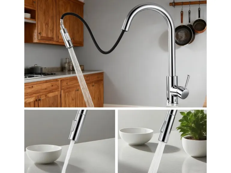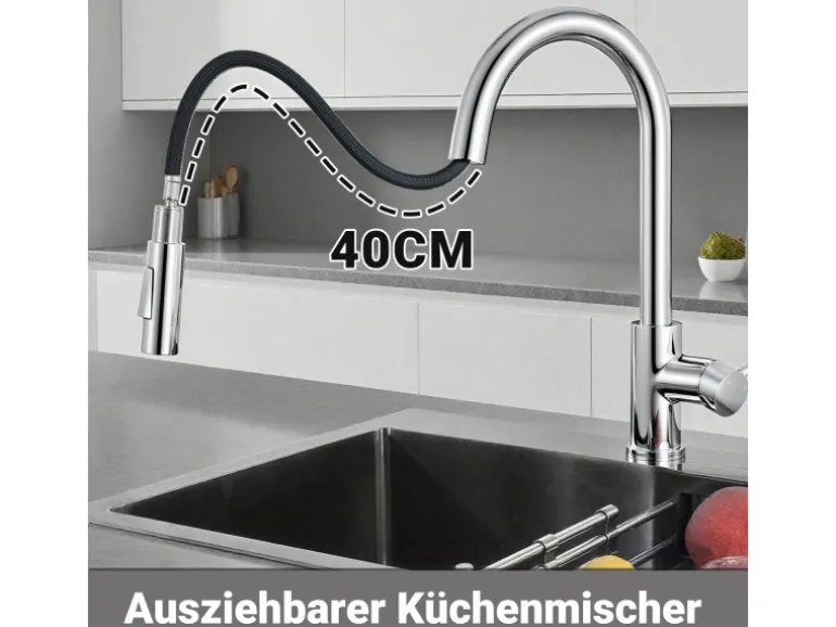 Besonderheit: Brause um 40 cm verlängerbar, duale Drucktechnologie, 360° drehbares Rohr