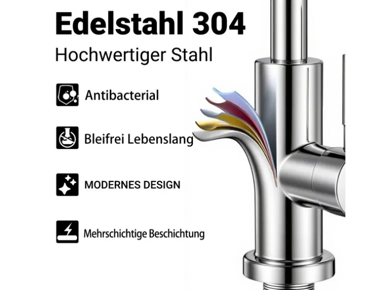 Material & Bauweise: Aus 304 Edelstahl, einlochige Armatur mit einem Griff.