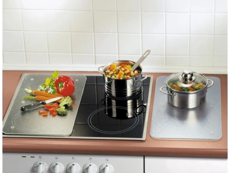 Die Herdabdeckplatten eignen sich zum Abstellen von warmen Töpfen und Pfannen. Ebenso können sie als zusätzliche Erweiterung der Arbeitsfläche zur Vorbereitung von Speisen dienen. Ihre kratzfeste, porenfreie Oberfläche wird höchsten hygienischen Ansprüchen gerecht, da sie das Einnisten von Bakterien und Gerüchen verhindert.