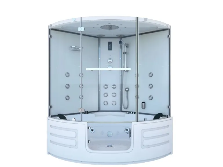 Farbe der Rückwände Weiß, Außenmaße der Dusch-& Whirlpool Kombination 150x150x217cm
