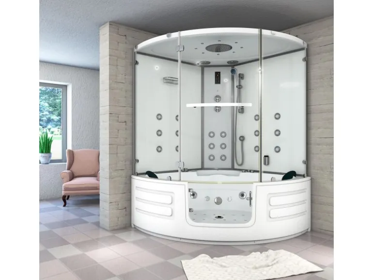 Farbe der Rückwände Weiß, Außenmaße der Dusch-& Whirlpool Kombination 150x150x217cm