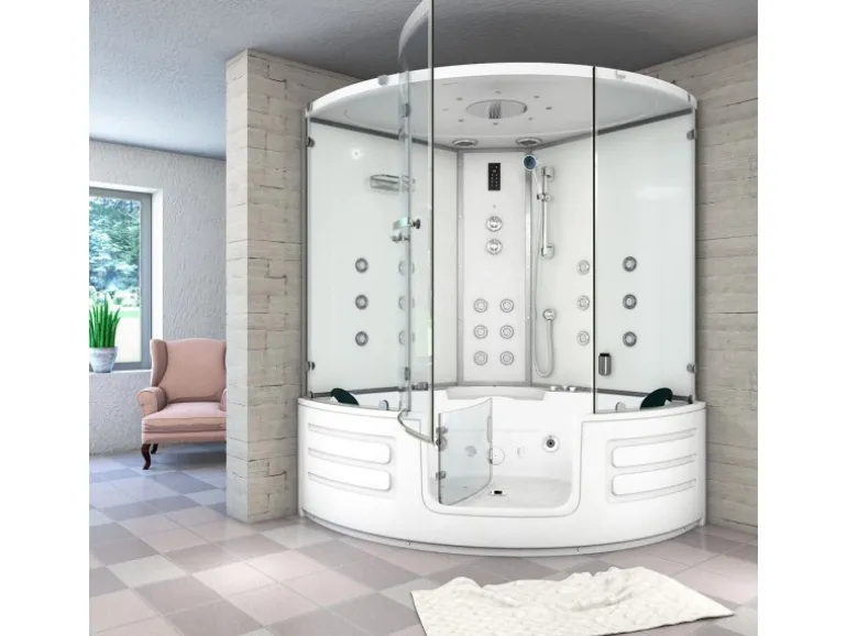 AcquaVapore Whirlpool Duschkabine Dampfsauna Seniorenwanne mit Tür K70-WS-EH-EC-SC 150x150cm Schlauc