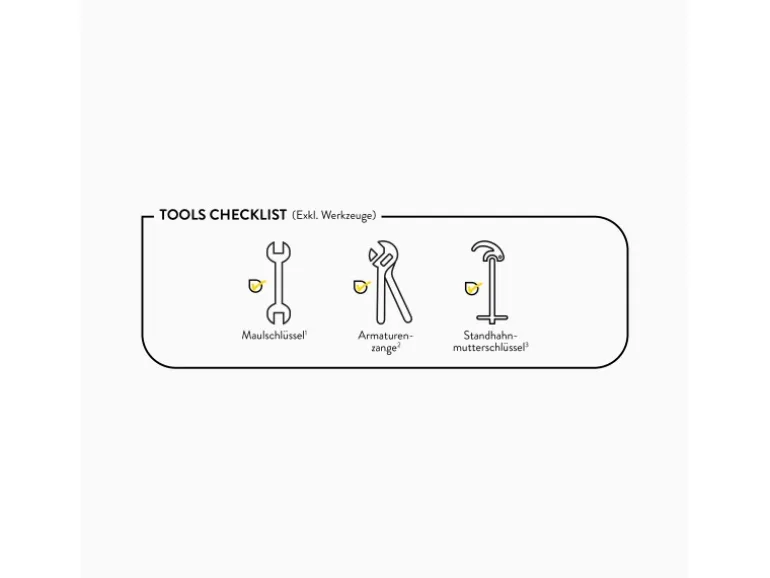Inkl. Anschlussschläuchen und Befestigungsmaterial