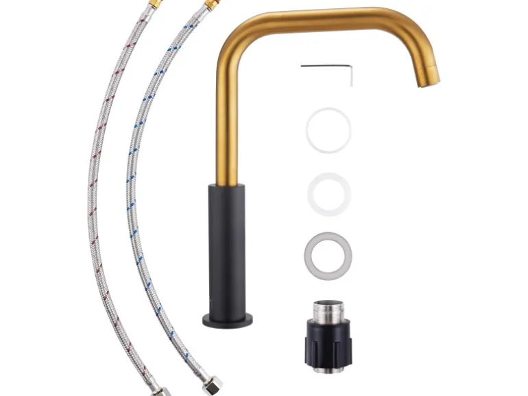 Für einen weichen Wasserstrahl beim Abspülen besitzt die Küchenarmatur eine Mischdüse. Und damit du nach dem Einbau starten kannst, haben wir die Armatur bereits mit einer Kartusche samt keramischen Dichtscheiben ausgestattet. Und weil du eine Küche willst, die lange hält, besteht die Armatur aus solidem Messing. Mit ihrer goldenen und schwarzen Oberfläche wirkt die Armatur modern und edel zugleich. Und damit du bei der Montage nicht unnötig Zeit verschwenden musst, legen wir der Armatur alles an Material bei, das du dafür brauchst.