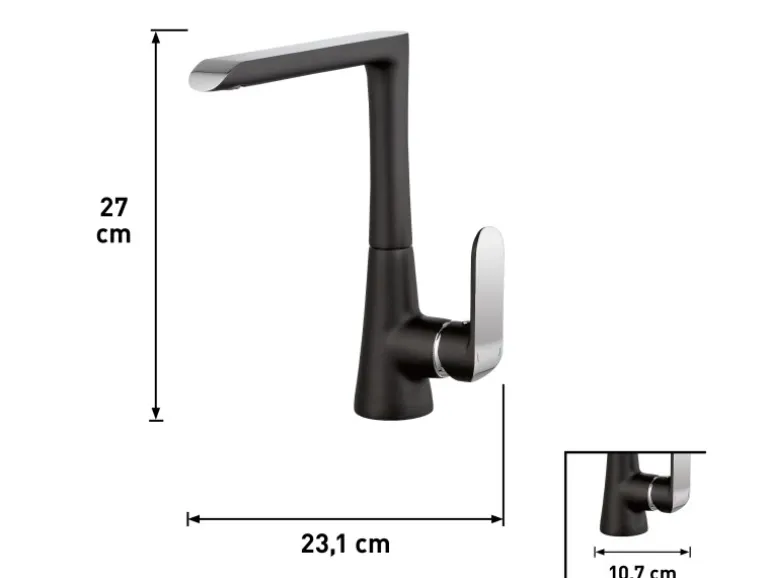 Die enthaltene Mischdüse erzeugt einen sanften Wasserstrahl, der nicht spritzt. Im Inneren haben wir eine hochwertige Kartusche mit keramischen Dichtscheiben für dich eingebaut. Und weil du eine Küche willst, die lange hält, besteht die Armatur aus solidem Messing. Die Oberfläche ist verchromt und sorgt damit für den nötigen Glanz in deiner Küche. Und damit du bei der Montage nicht unnötig Zeit verschwenden musst, legen wir der Armatur alles an Material bei, das du dafür brauchst.
