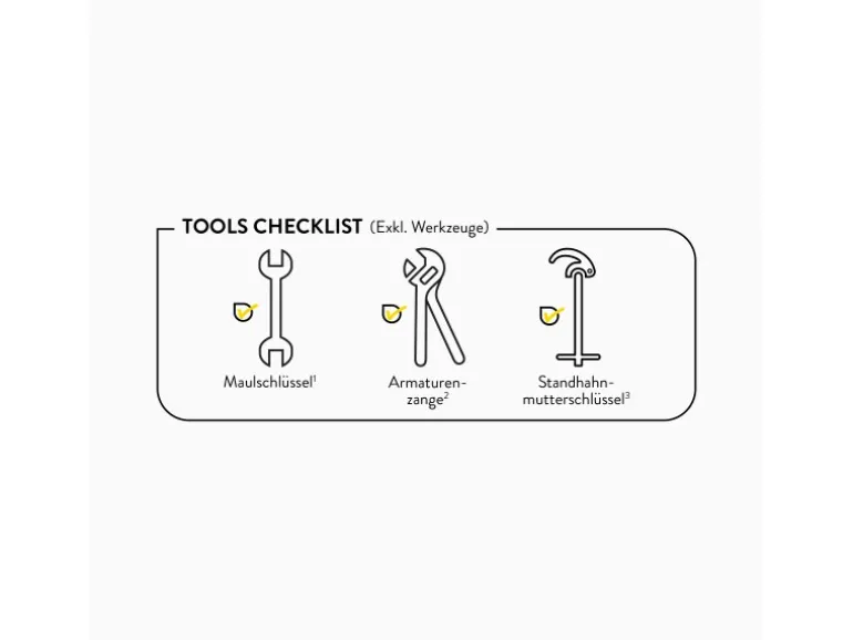 Inkl. Anschlussschläuchen und Befestigungsmaterial