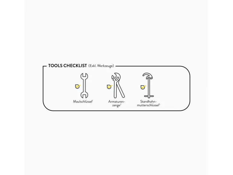 Inkl. Anschlussschläuchen und Befestigungsmaterial