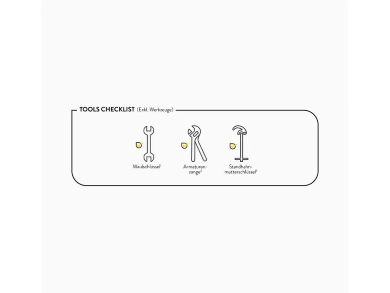 Inkl. Anschlussschläuchen und Befestigungsmaterial