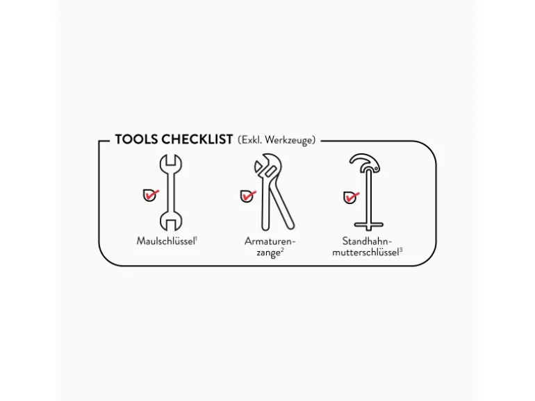 Inkl. Anschlussschläuchen und Befestigungsmaterial