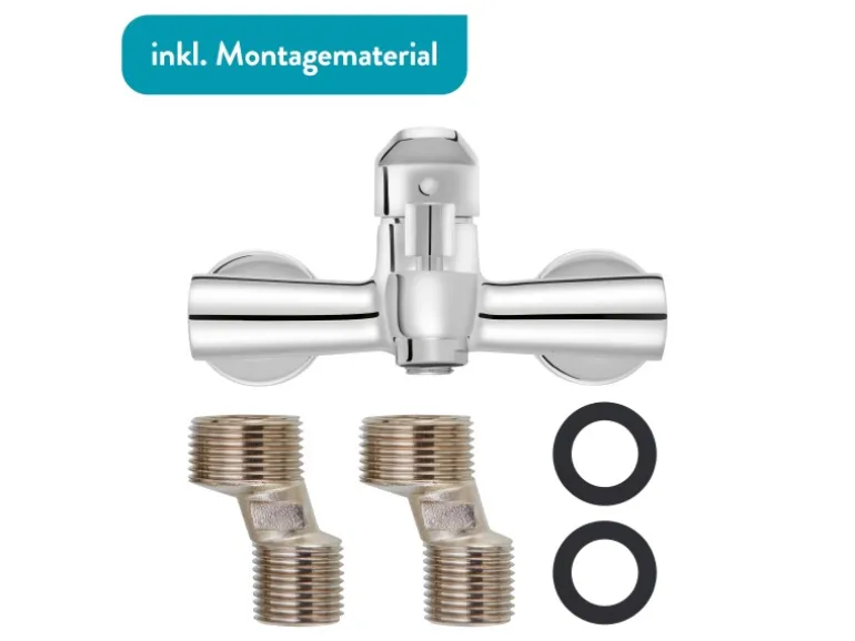 Die enthaltene Mischdüse sorgt für einen weichen Wasserstrahl. Außerdem haben wir eine hochwertige Kartusche mit keramischen Dichtscheiben für dich verbaut – so kann es nach dem Einbau gleich losgehen. Und weil du ein Bad willst, das lange hält, besteht die Badarmatur aus solidem Messing. Ihr edles Aussehen erhält die Armatur durch ihre verchromte Oberfläche. Und damit du bei der Montage nicht unnötig Zeit verschwenden musst, legen wir der Armatur alles an Material bei, das du dafür brauchst.