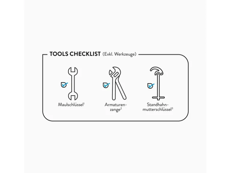 Inkl. Anschlussschläuchen und Befestigungsmaterial