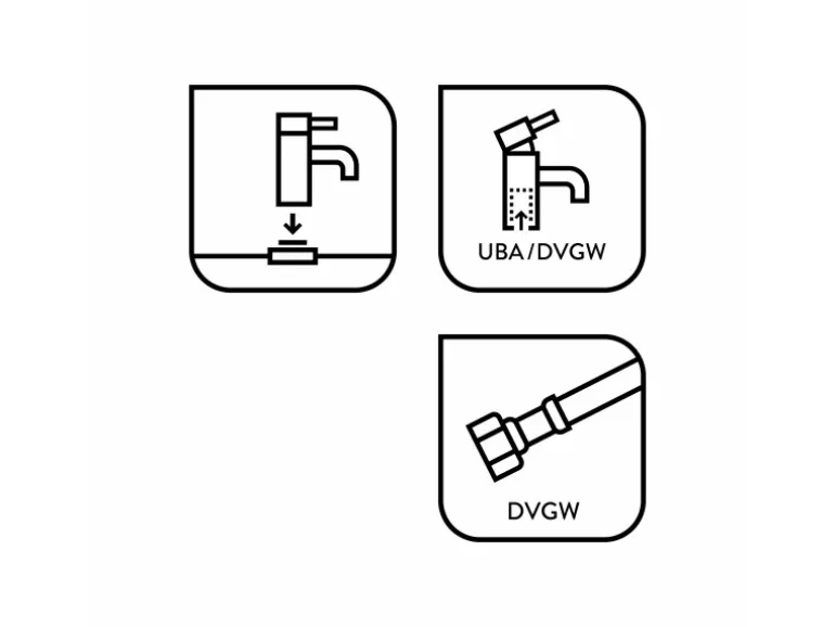Inkl. Anschlussschläuchen und Befestigungsmaterial