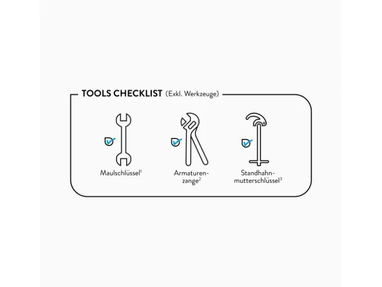 Inkl. Anschlussschläuchen und Befestigungsmaterial