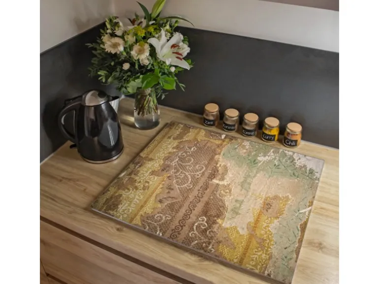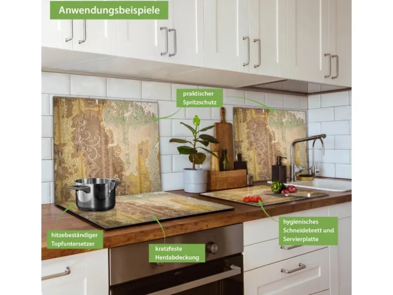Banjado Herdabdeckplatte Glas 1 Teilig 60x52CM Schneidebrett Herdabdeckung Mit Motiv Alte Tapeten