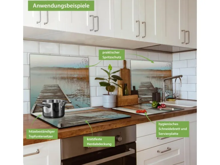 Banjado Herdabdeckplatte Glas 1 Teilig 60x52CM Schneidebrett Herdabdeckung Mit Motiv Alter Steg
