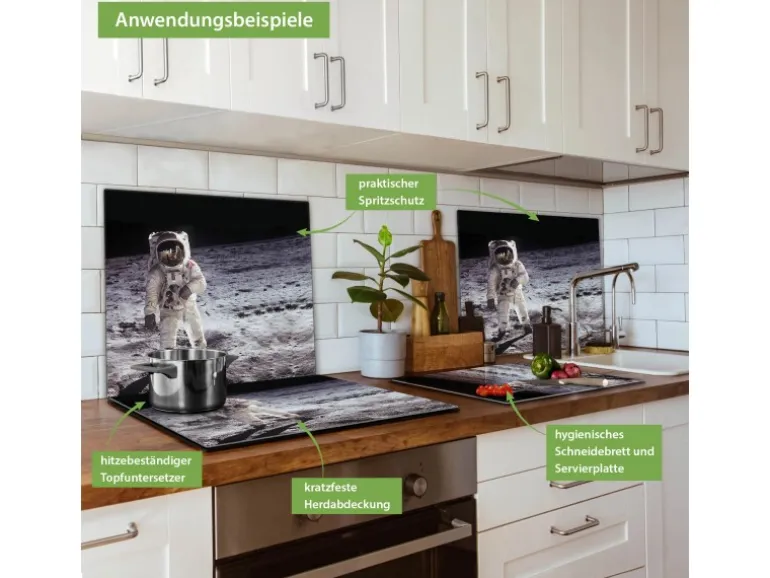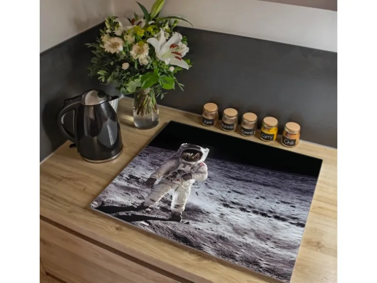 Banjado Herdabdeckplatte Glas 1 Teilig 60x52CM Schneidebrett Herdabdeckung Mit Motiv Astronaut