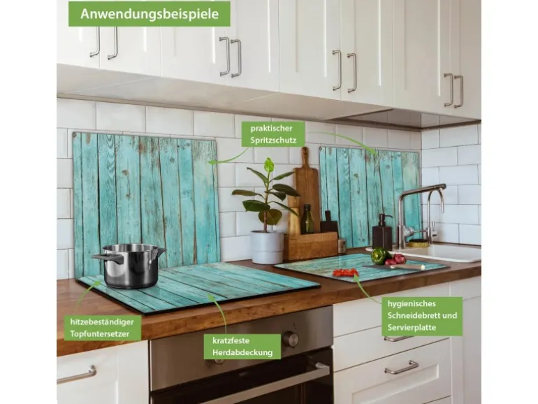 Banjado Herdabdeckplatte Glas 1 Teilig 60x52CM Schneidebrett Herdabdeckung Mit Motiv Blaues Holz