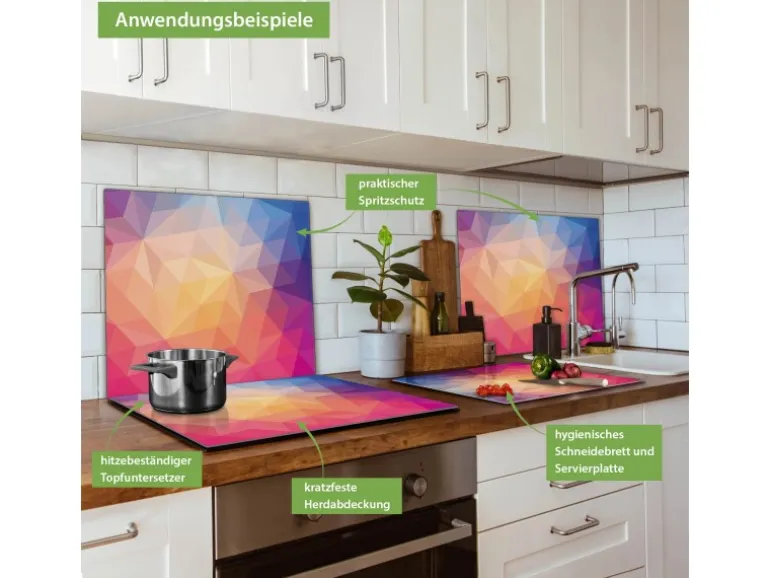Banjado Herdabdeckplatte Glas 1 Teilig 60x52CM Schneidebrett Herdabdeckung Mit Motiv Bunte Kristalle