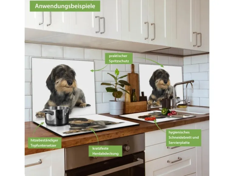 Banjado Herdabdeckplatte Glas 1 Teilig 60x52CM Schneidebrett Herdabdeckung Mit Motiv Dackel