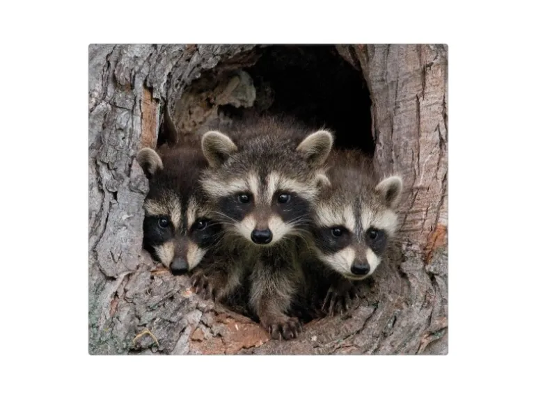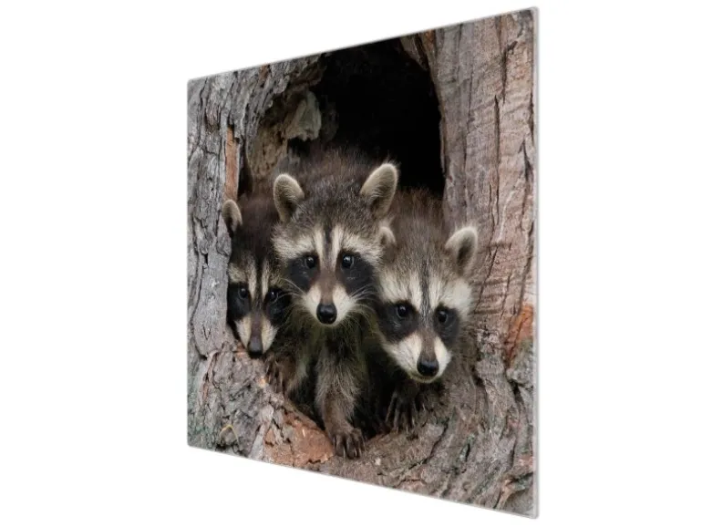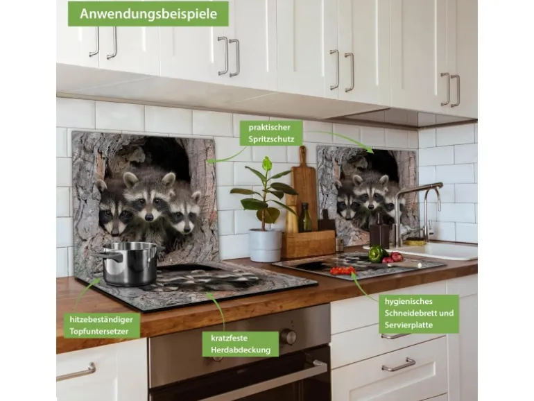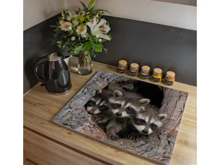 Banjado Herdabdeckplatte Glas 1 Teilig 60x52CM Schneidebrett Herdabdeckung Mit Motiv Drei Waschbären