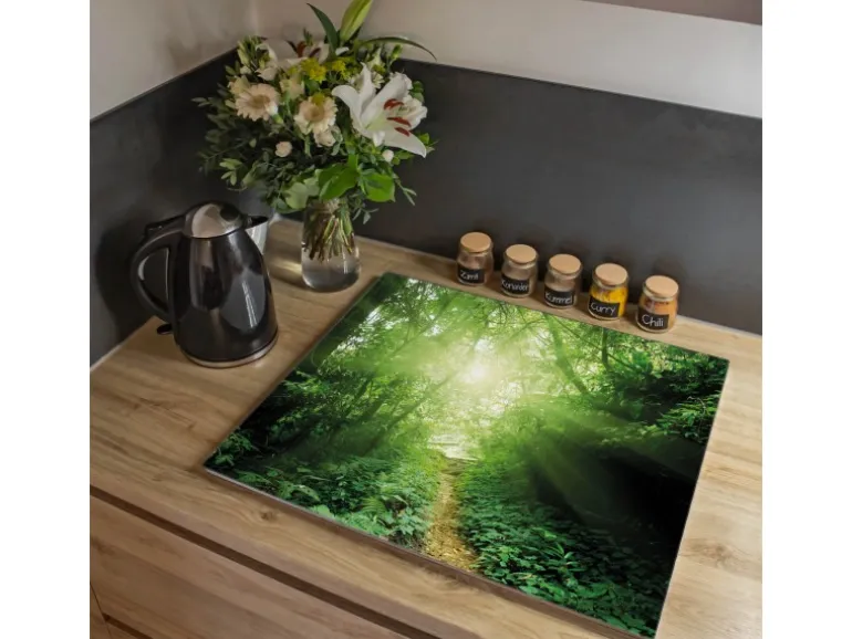 Banjado Herdabdeckplatte Glas 1 Teilig 60x52CM Schneidebrett Herdabdeckung Mit Motiv Dschungel Malaysia
