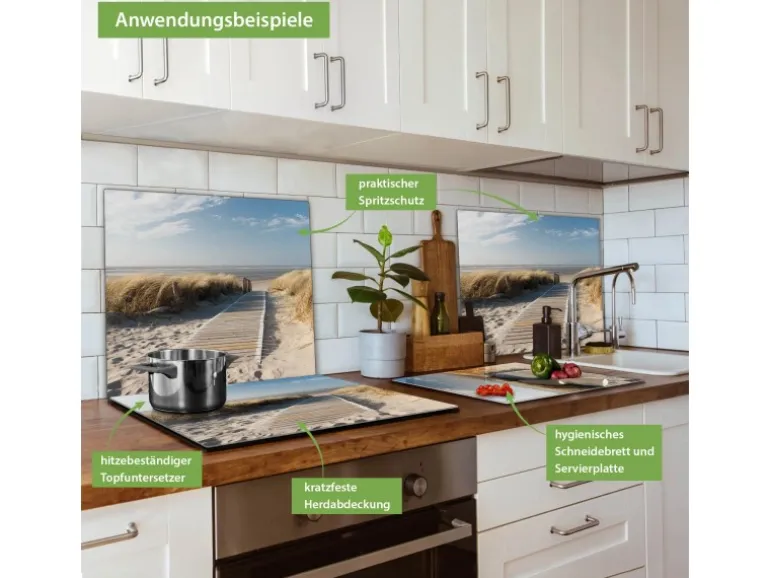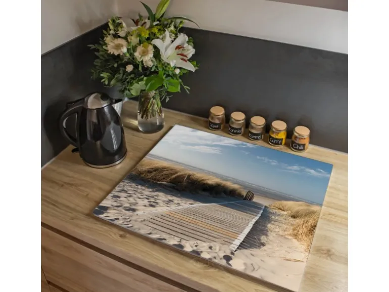 Banjado Herdabdeckplatte Glas 1 Teilig 60x52CM Schneidebrett Herdabdeckung Mit Motiv Dünen