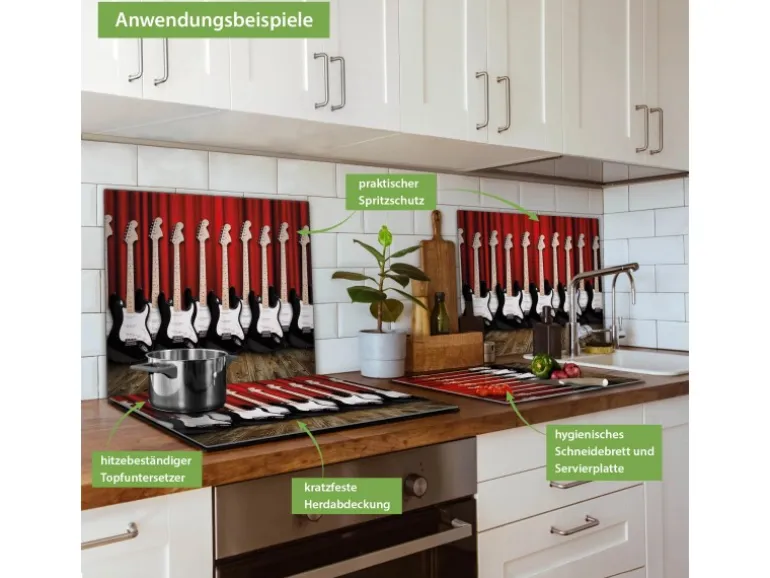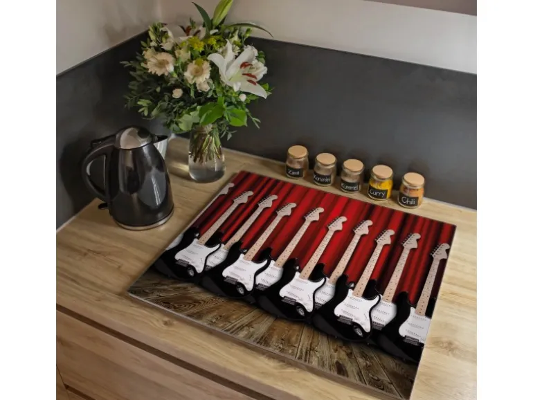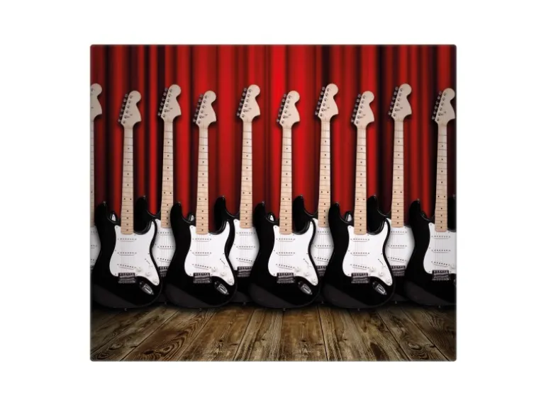 Banjado Herdabdeckplatte Glas 1 Teilig 60x52CM Schneidebrett Herdabdeckung Mit Motiv E-Gitarren