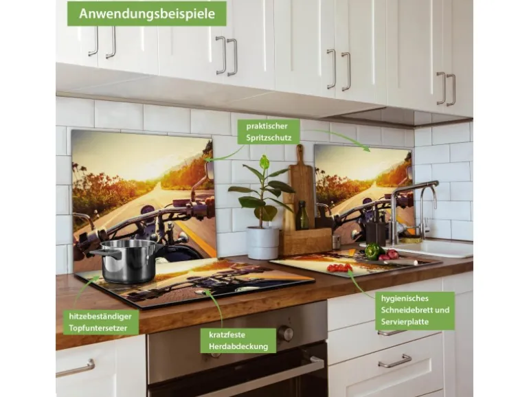 Banjado Herdabdeckplatte Glas 1 Teilig 60x52CM Schneidebrett Herdabdeckung Mit Motiv Easy Rider