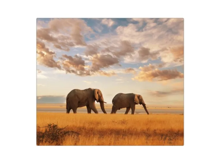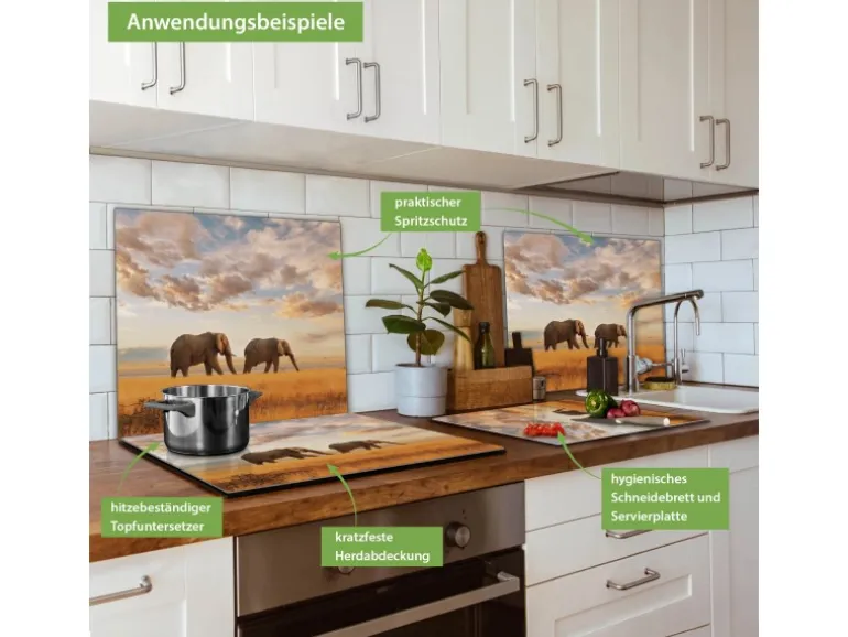 Banjado Herdabdeckplatte Glas 1 Teilig 60x52CM Schneidebrett Herdabdeckung Mit Motiv Elefanten