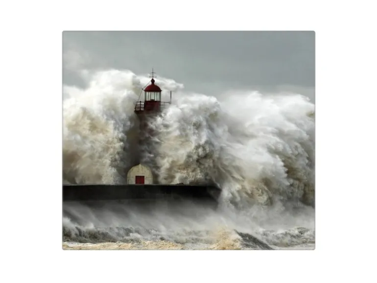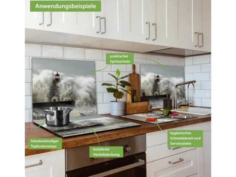 Banjado Herdabdeckplatte Glas 1 Teilig 60x52CM Schneidebrett Herdabdeckung Mit Motiv Fels In Der Brandung