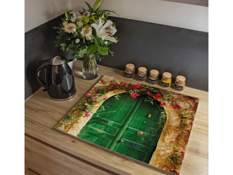 Banjado Herdabdeckplatte Glas 1 Teilig 60x52CM Schneidebrett Herdabdeckung Mit Motiv Ferienhaus
