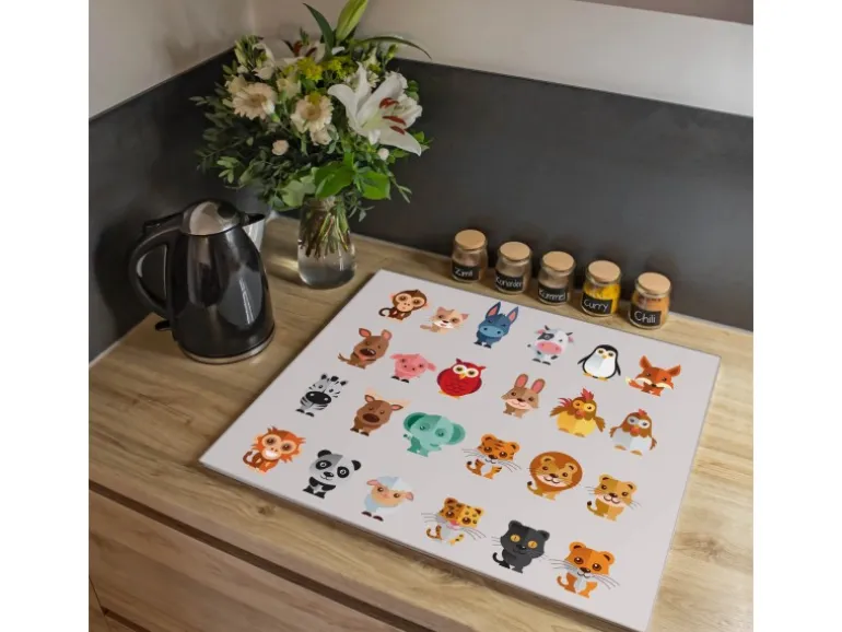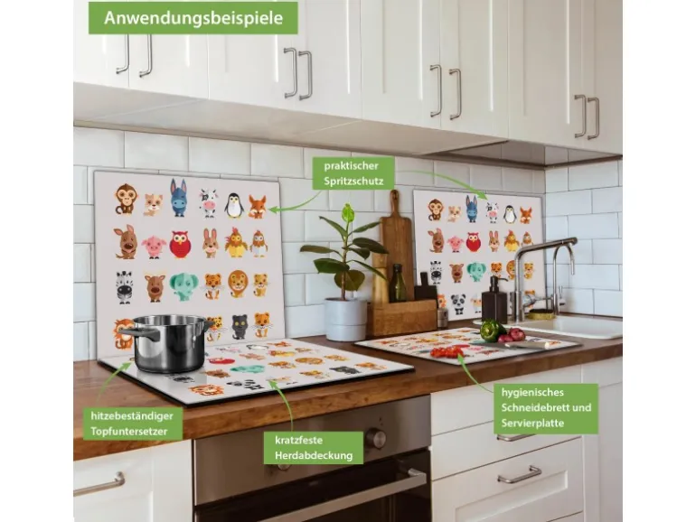 Banjado Herdabdeckplatte Glas 1 Teilig 60x52CM Schneidebrett Herdabdeckung Mit Motiv Freunde