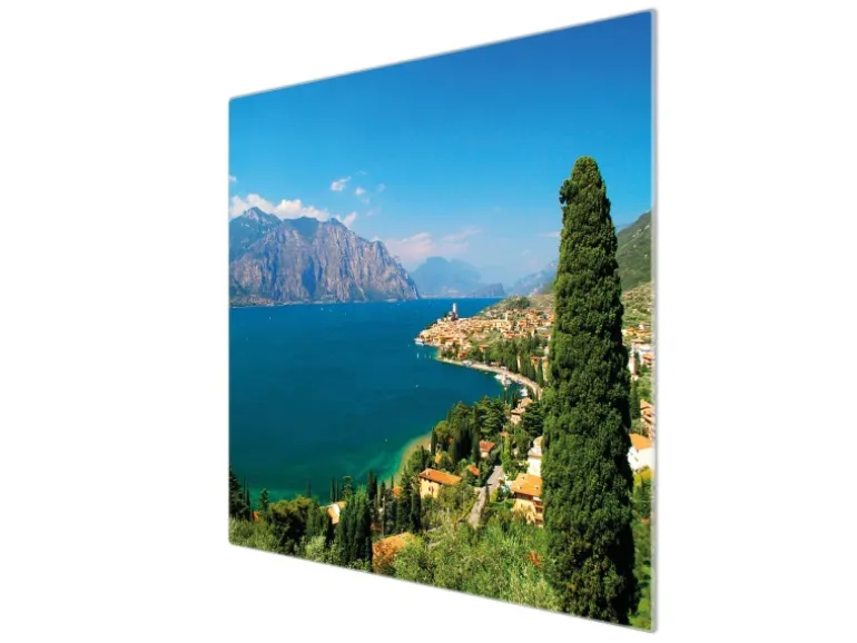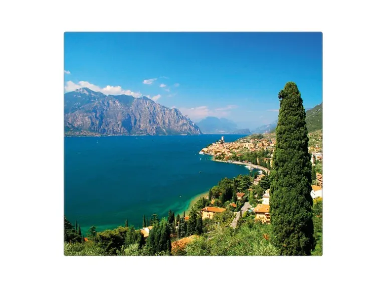 Banjado Herdabdeckplatte Glas 1 Teilig 60x52CM Schneidebrett Herdabdeckung Mit Motiv Gardasee
