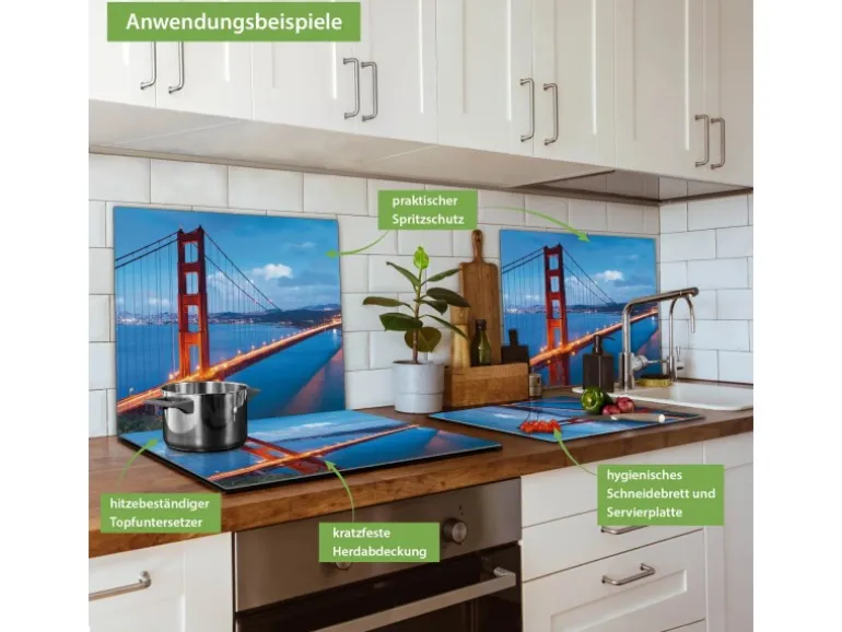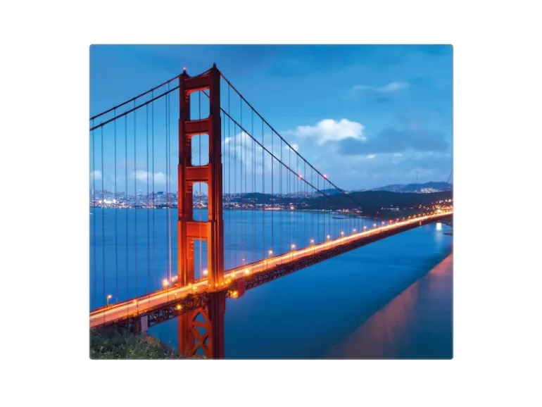 Banjado Herdabdeckplatte Glas 1 Teilig 60x52CM Schneidebrett Herdabdeckung Mit Motiv Golden Gate Bridge