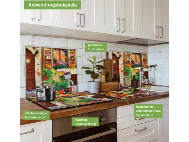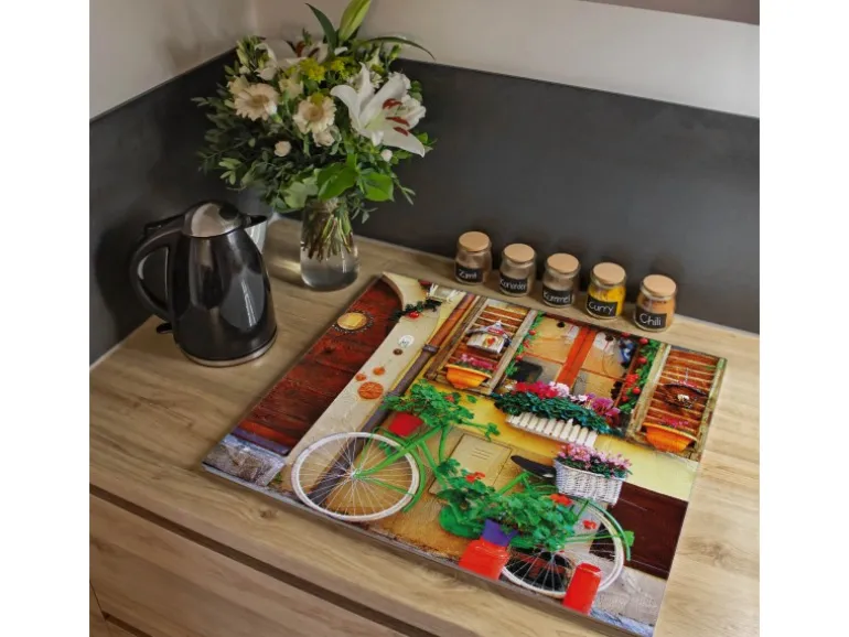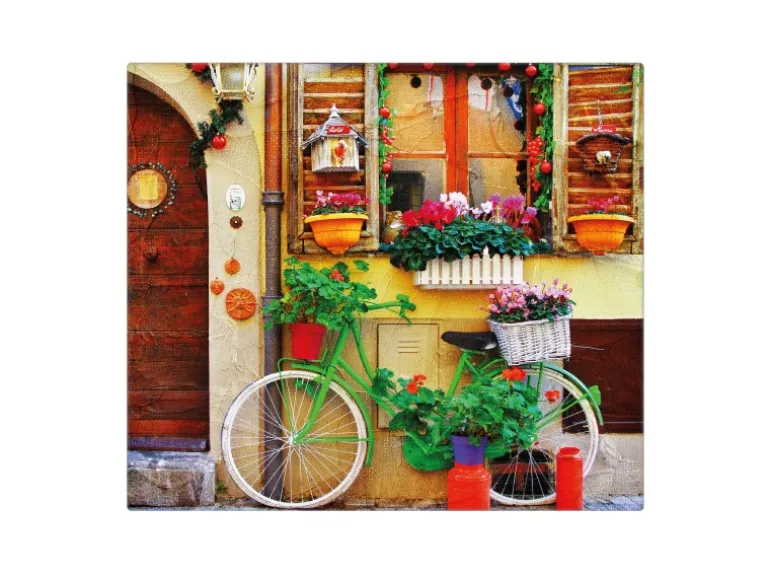 Banjado Herdabdeckplatte Glas 1 Teilig 60x52CM Schneidebrett Herdabdeckung Mit Motiv Grünes Fahrrad