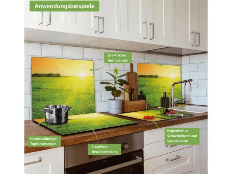Banjado Herdabdeckplatte Glas 1 Teilig 60x52CM Schneidebrett Herdabdeckung Mit Motiv Guten Morgen 2
