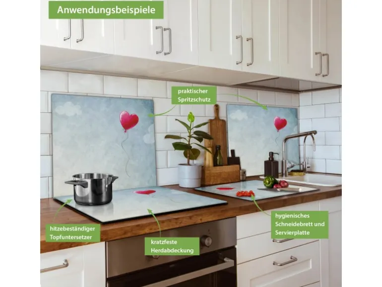 Banjado Herdabdeckplatte Glas 1 Teilig 60x52CM Schneidebrett Herdabdeckung Mit Motiv Herzballon