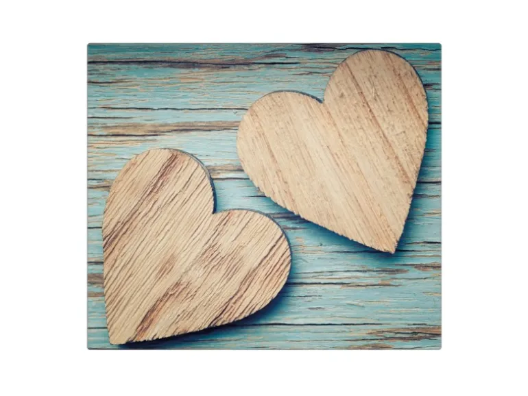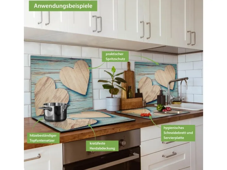 Banjado Herdabdeckplatte Glas 1 Teilig 60x52CM Schneidebrett Herdabdeckung Mit Motiv Holz Herzen