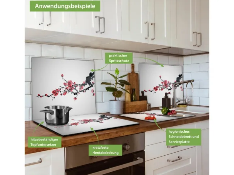 Banjado Herdabdeckplatte Glas 1 Teilig 60x52CM Schneidebrett Herdabdeckung Mit Motiv Japanische Blüten 2