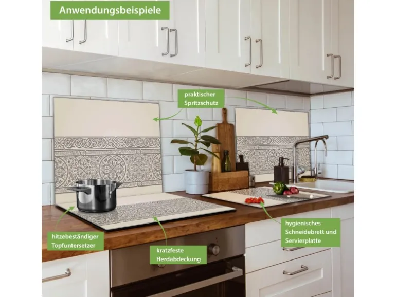 Banjado Herdabdeckplatte Glas 1 Teilig 60x52CM Schneidebrett Herdabdeckung Mit Motiv Keltischer Knoten