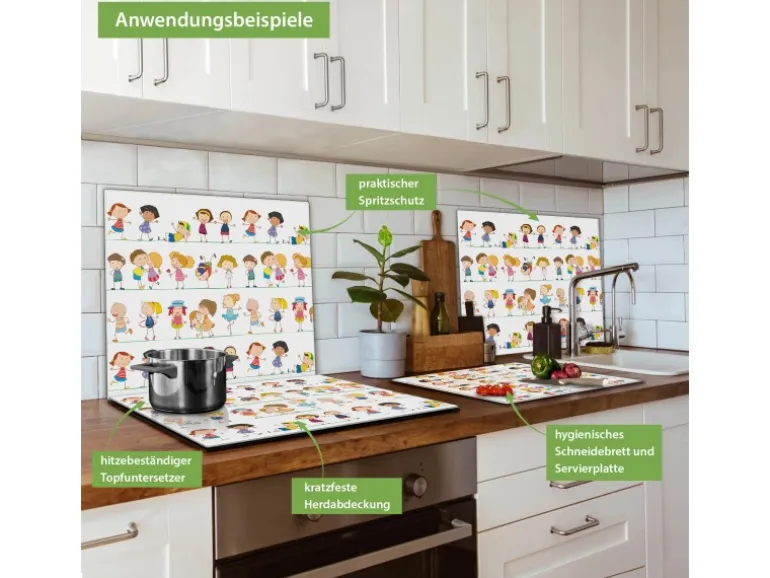 Banjado Herdabdeckplatte Glas 1 Teilig 60x52CM Schneidebrett Herdabdeckung Mit Motiv Kinder