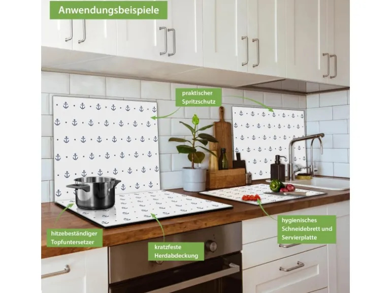 Banjado Herdabdeckplatte Glas 1 Teilig 60x52CM Schneidebrett Herdabdeckung Mit Motiv Kleine Anker