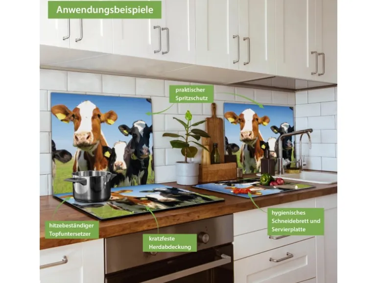 Banjado Herdabdeckplatte Glas 1 Teilig 60x52CM Schneidebrett Herdabdeckung Mit Motiv Kühe