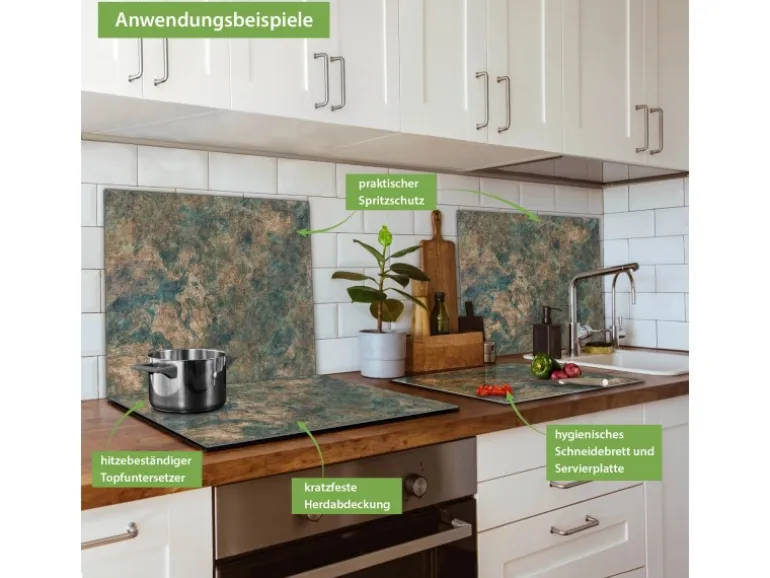 Banjado Herdabdeckplatte Glas 1 Teilig 60x52CM Schneidebrett Herdabdeckung Mit Motiv Kupfer Patina