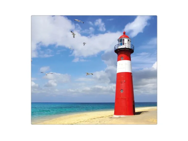 Banjado Herdabdeckplatte Glas 1 Teilig 60x52CM Schneidebrett Herdabdeckung Mit Motiv Leuchtturm Westkapelle