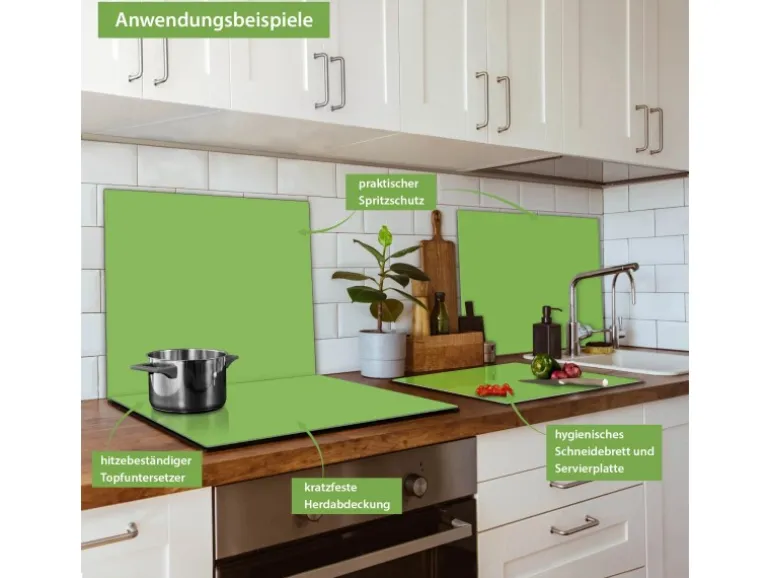Banjado Herdabdeckplatte Glas 1 Teilig 60x52CM Schneidebrett Herdabdeckung Mit Motiv Limettengrün